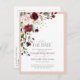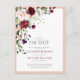 Berätta för gästerna att bröllop har blivit försenat med den här eleganten, burgundi och rosa blommigt bröllop, ett meddelande om senareläggning av datum för senareläggning med handmålade vattenfärgsuppgifter och handskrivna manusskrivna skrivtexter. Inbjudningskort för Elegant av upphovsrätt, alla höger reserverade.