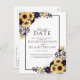 Berätta för gästerna att bröllop har blivit försenat med trendigets uppskjutningsmeddelande för bröllop med ett meddelande om plommons lila och blommigt för solrosfärg botaniskt inslag, med ett motsvarande plommon lila ram. Perfekt för fall och vinter. En del av en bröllop-svit som vi hoppas att ni kärlek lika mycket som vi gör: https://www.zazzle.com/collections/sunflower_plum_purple_watercolor-119497153976124119 Copyright Anastasia Surridge for Elegant Inbjudan, alla höger reserverade.