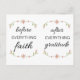 Elegant och inspirerande vykort. Uppmuntrande meddelande. Före allt TRO och Efter allt TACKSAMHET.