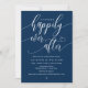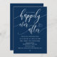 Snygg, modern, vacker, minimalistisk, marint, blått skript, Bröllop Rehearsal Middagsinbjudan (före lyckligtvis allt efter). Det här är perfekten för er bröllop kväll-repetition, middag och party firande. Lägg till information i matchande teckensnitt/text. #TeeshaDerrick