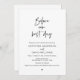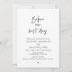 Snygg, modern, vacker, minimalistisk, svart skript, Bröllop Rehearsal Dinner-inbjudningskort (före vår bästa dag). Det här är perfekten för er bröllop kväll-repetition, middag och party firande. Lägg till information i matchande teckensnitt/text. #TeeshaDerrick