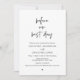 Snygg, modern, vacker, minimalistisk, svart skript, Bröllop Rehearsal Dinner-inbjudningskort (före vår bästa dag). Det här är perfekten för er bröllop kväll-repetition, middag och party firande. Lägg till information i matchande teckensnitt/text.