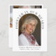 Ett vackert budgetvänligt begravnings- och minneskort som visar ditt älskade foto i en elegant ram och "Forever In our Hearts" i typografi. Lägg till namn och födelse och död data. På baksidan finns "Tack" i ett handskript i stil. Lägg till ytterligare ett foto och anpassa ditt tackmeddelande och ett inspirerande budskap som tillval.
