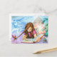 En bild av kreativet som visar en flicka som läser ett bok omgivet av sin fantasi (med ett slott överst på ett berg, en trollkarl som slåss mot en drake, en enhörning, en älva som drar hennes hår och en liten gåva som försöker stjäla hennes ring). Ursprunglig målning gjord med vattenfärger av konstnären "Luna" Siffert. Anpassade. Du kan lägga till text och bilder, ändra stilar och storlekar (beroende på produkttyp) osv. Den här designen finns även på andra produkter.