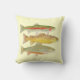 Regnbåge-, brunt- & bäckforell på en kudde. Från original- vattenfärgstudier vid Glace Thom