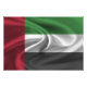 Fototryck med Förenade Arabemiratens flagga i vågig tygdesign. Denna design har Förenade Arabemiratens flaggfärger och design med en vacker vågande materialstruktur effekt. Denna flaggdesign är ett bra sätt att visa att du är stolt över att vara från Förenade Arabemiraten.