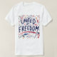 T-shirt-skjortan "United by Freedom" har ett fet, graffiti-stil-teckensnitt med pulserande färg och droppar, som skapar ett dynamiskt och upprörande utseende. Frasen ställs in mot en enkel, solid bakgrund som gör att typografin kan gå i mitten. Denna utformning är en perfekt för alla som vill uttrycka sin tro på frihet och individualitet.