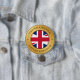 Förenade kungarikets flagga är inbundet i ett rundat faux guld ring. Ord "Förenade kungariket" finns överst och grund i formgivningen och har en pressad verkan. Paret med tre dekorativa stjärnor från varandra är också designat med en tryckt effekt.