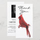 Modern begravning tack vare ditt kort med en slående röd vattenfärgskardinal som sitter på träd gren med texten "tack", och på baksidan finns en personligens sympatikänslomall med ett foto.
