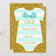Det här är en söt och enkel babyduschinbjudan med en turkos och vit unitard med rand på glitter.