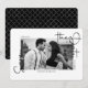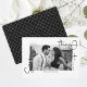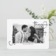 Detta förenklade spara-till-datum-meddelande med vit-och-svart-foto fångar själva kärnan av enkelhet och sofistikering. Med fotot omgivet av ett vitt ram, seriöst och kursivt teckensnitt på framsidan och ett svart och vitt geometriskt, prickat diagonalt mönster på baksidan.