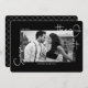 Detta förenklade svartvitt spara-till-datum-meddelande fångar det centrala i enkelhet och sofistikering. Med fotot omgivet av ett svart ram, seriöst och kursivt teckensnitt på framsidan och ett svart och vitt geometriskt, prickat diagonalt mönster på baksidan.