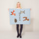 Söt blå baby-filt med en vit fyrfolie mönster och en vacker grafik av en fawn, räv, hedgehog och nypa. Anpassa den bruna texten. Lustigt baby-presentidé.