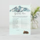 Njut av att spela den här Gissa det Prisa babyduschspelet. Detta är ett tema som börjar i äventyr, med en mamma och baby på baksidan. Denna konstruktion har en skog med rustik, vattenfärgade berg med reflekterande sjö framför och gräs träd runt sjö. Baby bär unge på viltet.