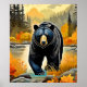 Se en stor svart björn som går nära en flod i ett färgstarkt skogslandskap på hösten. Utforska naturlivets skönhet i dess naturliga fallområde. Perfekt för älskare av natur och vilda djur och växter (detta utkast är utformat med hjälp av aviär influensa). Ställe beställer i dag och Kämpa på köpet!
