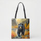 Se en stor svart björn som går nära en flod i ett färgstarkt skogslandskap på hösten. Utforska naturlivets skönhet i dess naturliga fallområde. Perfekt för älskare av natur och vilda djur och växter (detta utkast är utformat med hjälp av aviär influensa). Ställe beställer i dag och Kämpa på köpet!