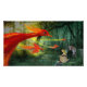 Mytiska foenixfåglar flyger genom skogen och passerar en enhörn och en älv sitta bredvid ett bassäng. Yuichi Tanabes digitala konst.