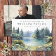 An elegant celebration of life, funeral guestbook, featuring a watercolor woodland forest wildflowers floral lake scene with the loved one's photo on the reverse. Designed by Thisisnotme©