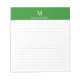 Forest green lined notepad with ivory monogram and custom full name, designed for structured notes in a timeless color combination. The deep green base enhances the soft ivory text for a balanced and elegant finish.