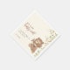 Sötskogskött babyduschnapkin med en vattenfärgad illustration av en björn unge med grenar och löv runt den. Texten "vi kan vänta tidigt!" visas i modern serif- och skripttypografi.