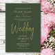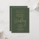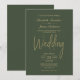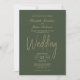 En elegant-minimalistisk bröllopsinbjudan till grönt med guld text.