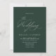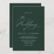 Klassiska bröllopsinbjudningar med ett vintage-stil-skript. Vitt teckensnitt på en kontrasterande mörk grönt bakgrund.
