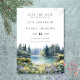 This elegant forest lakeside wildflowers floral watercolor wedding save-the-date card can be personalized with your information in modern typography. Designed by Thisisnotme©