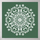 Den här vita mandala sitter på en bakgrund av grönten. Färg är fredligt. Del av Mola Mandala-samlingen.