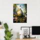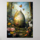 Underbara Påsk Poster med ett stort påskägg och söta djur som en påskhare eller kanin. Magic Fantasy Forest Blommigt Art med blommor och ätliga djur. Forest Skogen Egg.