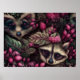Forest Raccoon Rosa Berries | Skriv ut rackosmur Poster