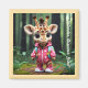 Möt vår berömvärda giraffe baby, klädd i vibranta, vackert mönstrade kläder, med en charmig liten väska som slungas över hans rygg. Den här fina designen tar upp nyfikenheten och äventyr. Perfekt för att lägga till en aning spelbarhet till vilket utrymme som helst. "Ursprunglig bild genererades av Meta AI. AI skapade teckningar. Licensierad enligt CC BY-SA 4.0.