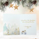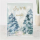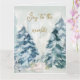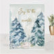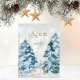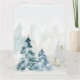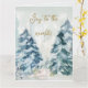 Julens Julhälsningar kort. "Joy to the world" med vit varg runt gräs träd med Snö som sjunker i skogen. Vattenfärgmålning. Vinterblues, grönt och vitt. Det är lätt att anpassa det här mycket minnesvärda julkortet.