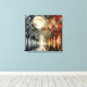 Har du tagit en promenad in i skogen under fullt måne? Detta är en representation av abstrakter. Träd verkar vara identiskt och ser bara rader och rader av träd-trunkar och deras löv med lite färg nattetid. Det är bara månljus som kommer genom kanopin i träd.