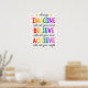 IMAGINE - med all din sinne BELIEVE - med allt ditt hjärta ACHIEVE - med all din kraft Få studenter att tänka med detta tänkvärda, motiverade, inspirerande och upplyftande självförtroende poster. Ett roligt, glatt och starkt tillägg till klassrummet eller skolrådgivningen poster att utmana studenter att ändra sitt tänkesätt och främja ett sunt självförtroende och ett positivt tänkande.