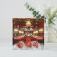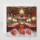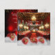 Lyxiga herrgårdar, många matbord, omgivna av en utsmyckad öppen spis, högceilingad hall med röd dukning, gyllene stolar, champagneflaskor, glas vid festliga bord omgivna av långsmala kandelabrar prydda med röda gyllene vita och röda blå kulor, utsmyckad julgran som lyser i den varma atmosfären från en sprakande öppen spis i bakgrunden som ekar en storslagen 1700-tals georgiansk herrgårdsmiljö. Lyxig röd matta Julfirande Party Inbjudan. Företags Xmas-fest. Eleganta gyllene gröna & röda järnekbladskulor med gyllene gnistrande glitter och snö. Observera: Alla platta bilder!