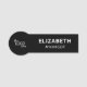 Modern svart namnskylt med din verksamhet eller organisations företagslogotyp. Lägg till ett namn och titel i enkel vit typografi.