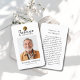This beautifully white minimal designed "Tree of Life" illustration, funeral photo prayer card allows you to create a heartfelt tribute to your loved one. Simply add your favorite photo and customize the text with a meaningful message or scripture. The front of the card features classic, timeless typography to honor their memory, while the back includes a customizable prayer or poem set against a sleek black background. Thoughtfully crafted, this card serves as a cherished keepsake, offering comfort and remembrance for family and friends.