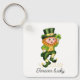 Forever Lucky Grönt Gnome & Monogram på White Keyc Nyckelring