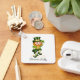 Tur för evigt tursam grönt som håller en klöver och guldkonfetti på vit bakgrund. Text kan vara personlig. Monogram på baksidan. En bra souvenir för alla!