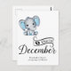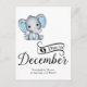 Den ärade pojke-elefanten med blå polka punkt öron, typografi "Förfaller i december" och mall för speciella meddelanden om gravid.