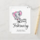 Flicka-elefant med rosa polka punkt öron och liten rosa över örat, typografi "Förfaller i februari" och mall för speciella meddelanden om gravid.