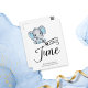 Den godtrogna pojke-elefanten med blå polka-punkt öron, typografi "Förfaller i juni" och mall för speciella meddelanden om gravid.