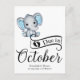 Den ärade pojke-elefanten med blå polka punkt öron, typografi "Förfaller i oktober" och mall för speciella meddelanden om gravid.