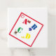 Den främre designen har de första fyra breven av alfabetet i ljust, vibrerande färg. Bilder av objekt som börjar med brev visas bredvid motsvarande brev. Den omvända sidan har en röd bakgrund till texten i fet, vit text. Designad för samordning med "ABC Baby Shower & Nursery Collection".