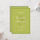 Meddela din fest med denna eleganta gula/gröna svunna bröllopsinbjudan med graciös typografi och subtila handritade palmtjeckaccent. Den raffinerade chartreuse-gröna färgpaletten i kombination med flytande, svunna bokstäver skapar ett uttryck som känns tidlöst, romantiskt och sofistikerat, medan palmillustrationerna ger en mjuk destinationstouch. Perfekt för trädgårdsbröllop, medelhavsinspirerade fester eller destinationsevenemang, förenar denna inbjudan klassisk elegans med avspänd värme för en bröllopsstil som känns förfinad, lugn och otvungen.