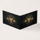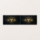 Konstnärligt ritad, symmetrisk komposition av svart och guld, fågelvingar, förgylld, fågelskalle dekorerad med förgylld mönster på mörk, texturerad bakgrund. Gotisk stil