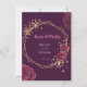 guldram med blommor rosor på en vinröd bakgrund för bröllopet