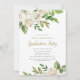 Prisvärda specialtryckta inbjudningskort till studentfest med en elegant blomsterkant målad i vitt, grönt och med förgyllda accenter. Anpassa mallen med dina evenemangsuppgifter eller använd designverktygen för att anpassa texten, välj bakgrundsfärger och redigera teckensnitten för att skapa din egen unika inbjudan till studentfest. Baksidan har en vacker, salviagrön bakgrund eller använd utrymmet för att lägga till ytterligare text eller foton om det behövs. Denna vackra, neutrala blommiga design är perfekt för alla säsonger.