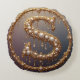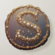 Luksuriöst förgyllt bokstavsmonogram prytt med pärlor, diamanter och utsirat barockfiligran i en cirkulär dekorativ ram; elegant, kunglig och mycket detaljerad design för varumärke eller redaktionellt bruk.