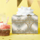 Vackert förgyllt utsirat vitt blommigt presentpapper